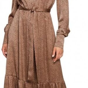 Maxi sukienka z falbaną – brązowa